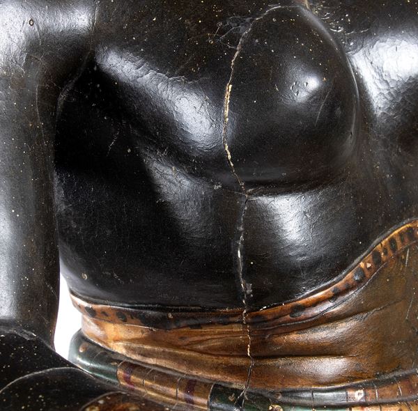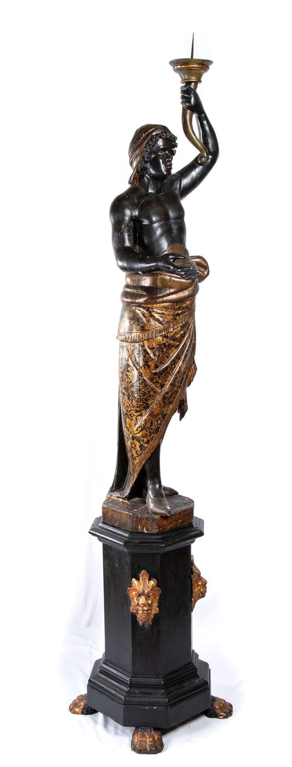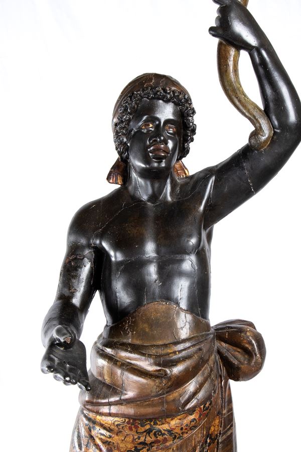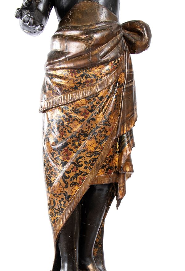 Grande scultura in stile veneziano raffigurante moro in legno policromo e dorato della fine del XIX secolo
