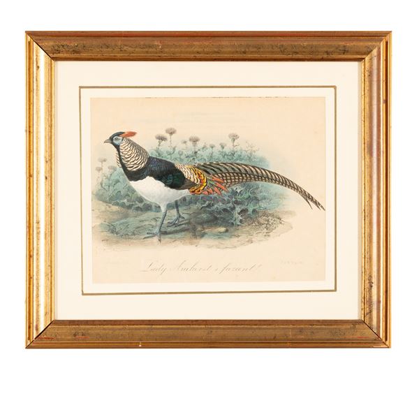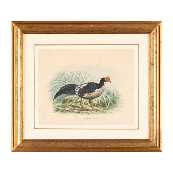 Lotto di 2 incisioni acquerellate rappresentanti uccelli