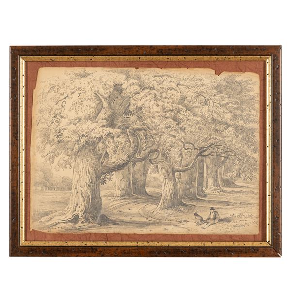Lotto di 3 disegni della campagna inglese realizzati en plain air