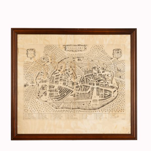 Lotto di incisioni rappresentanti vedute e mappe della città di Velletri
