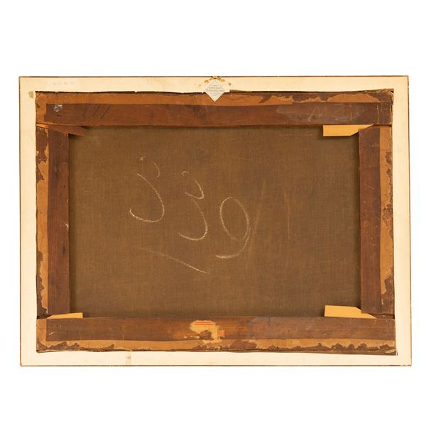cm 59x81,5; con cornice cm 67x90Natura morta con pesci su sfondo di paesaggio marino con firma in basso al centro " A...." indecifrabile