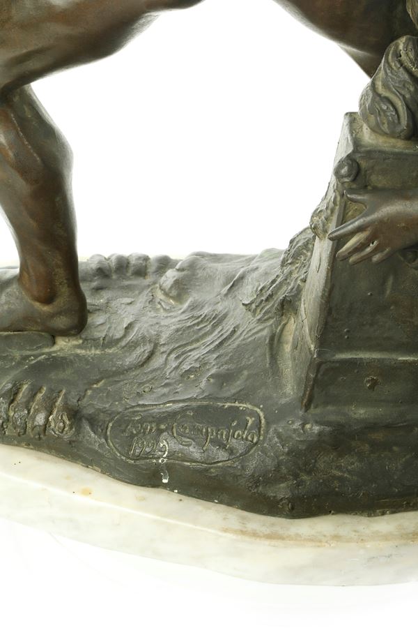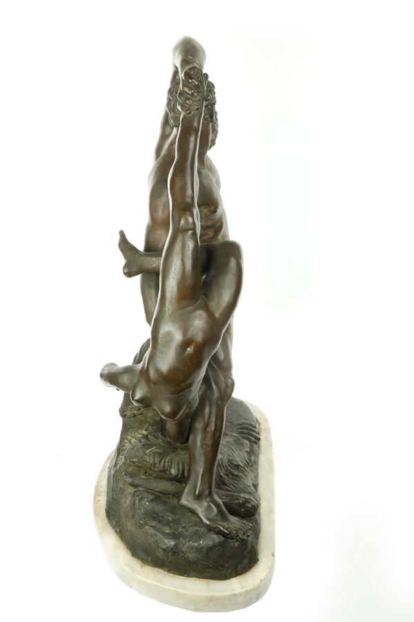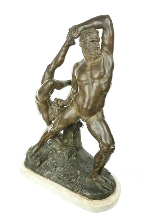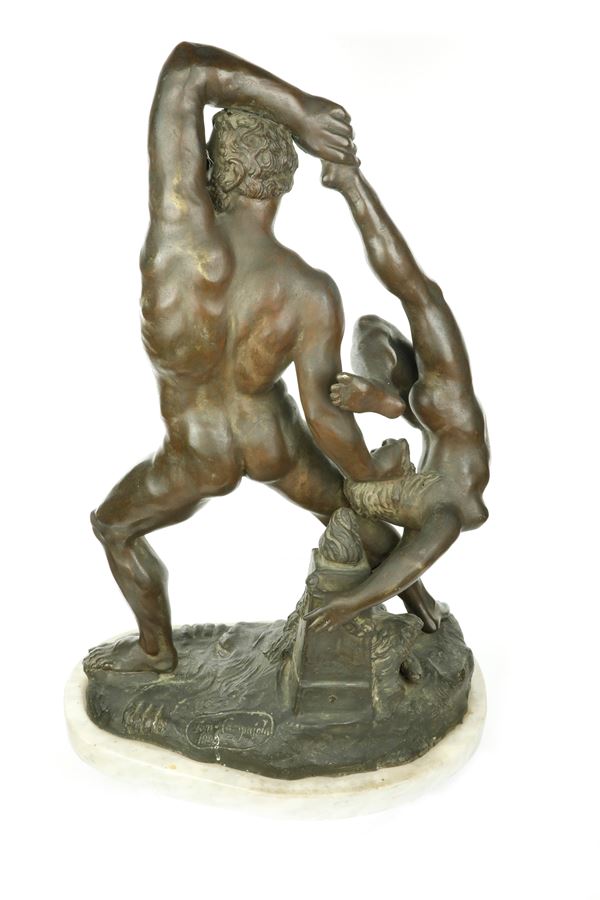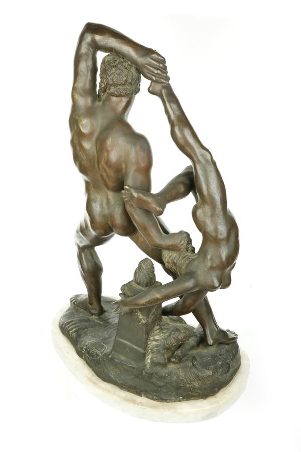 Scultura bronzea raffigurante Ercole e Lica su base di marmo