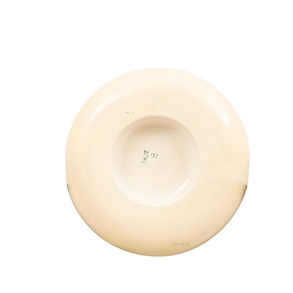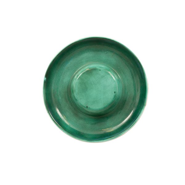su Piatto in maiolica con cavo estroflesso e tesa di colore verde,