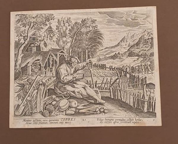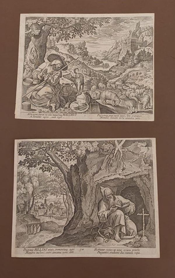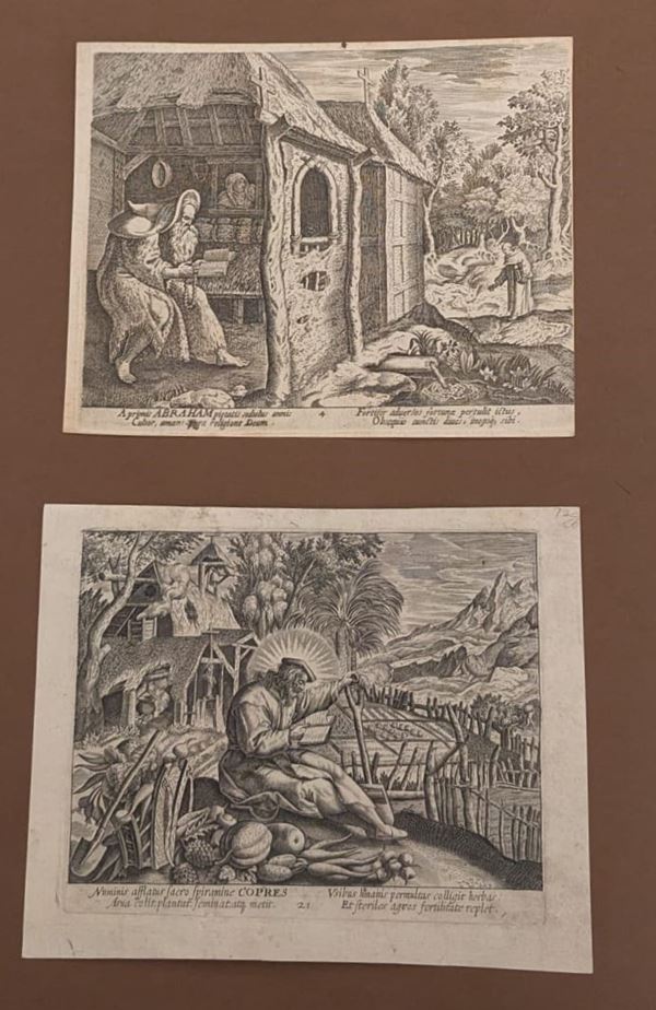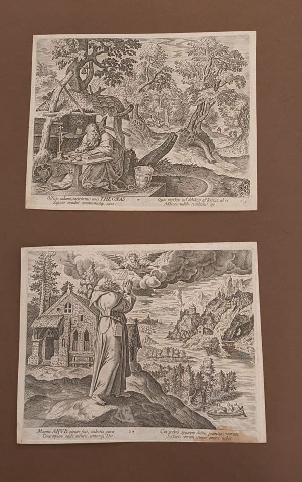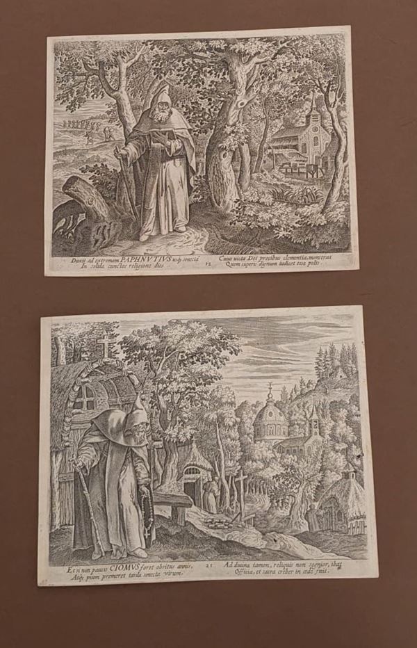 Lotto di 10 incisioni e frontespizio del volume Illustrium Anachoretarum Elogia siue religiosi viri musaeum di Iacobo Cavacio Monaco Benedettino [..]