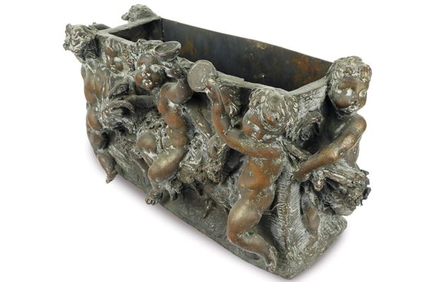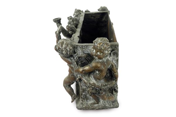 BronzoPORTA VASO IN BRONZO RAFFIGURANTI PUTTI