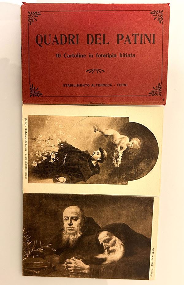 38) 10 cartoline in fototipia bitinta dei QUADRI DEL PATINI - Stabilimento Alterocca Terni in folder rosso