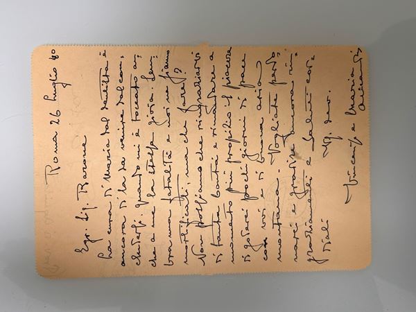 1) Piccola stampa di Impressioni, dipinto di Teofilo Patini. Al retro a penna blu A Don Pasquale, per favore. Firenze, 13 XII 1962. Molti devoti auguri per Natale - Anno Nuovo. Via Passavanti, 5 S. De Marco.