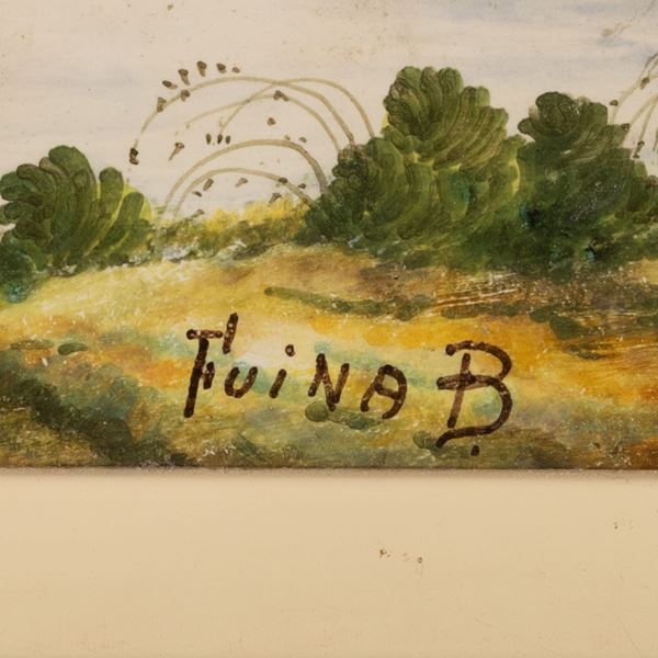 Mattonella in cornice in legno, Castelli, a firma Fuina