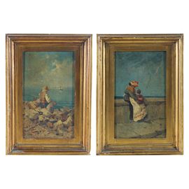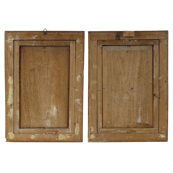 Coppia di dipinti olio su tavola, scuola napoletana del XIX-XX secolo.