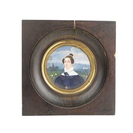 Un ritratto di nobildonna paesaggio con sfondo di castello firmata "CB" (?)