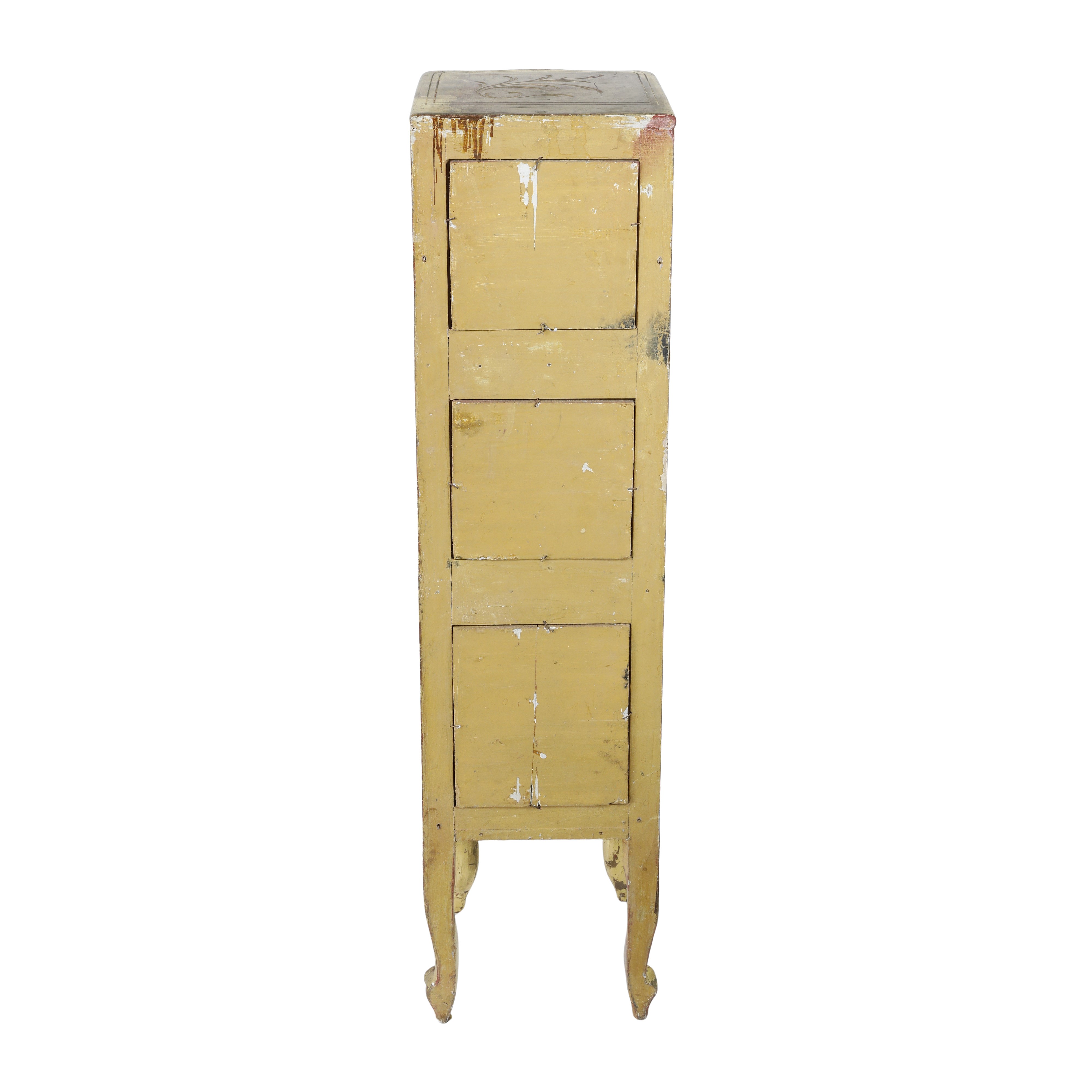 Etagere in legno di pioppo a 3 ripiani con lesene sul fronte e gambe a ricciolo