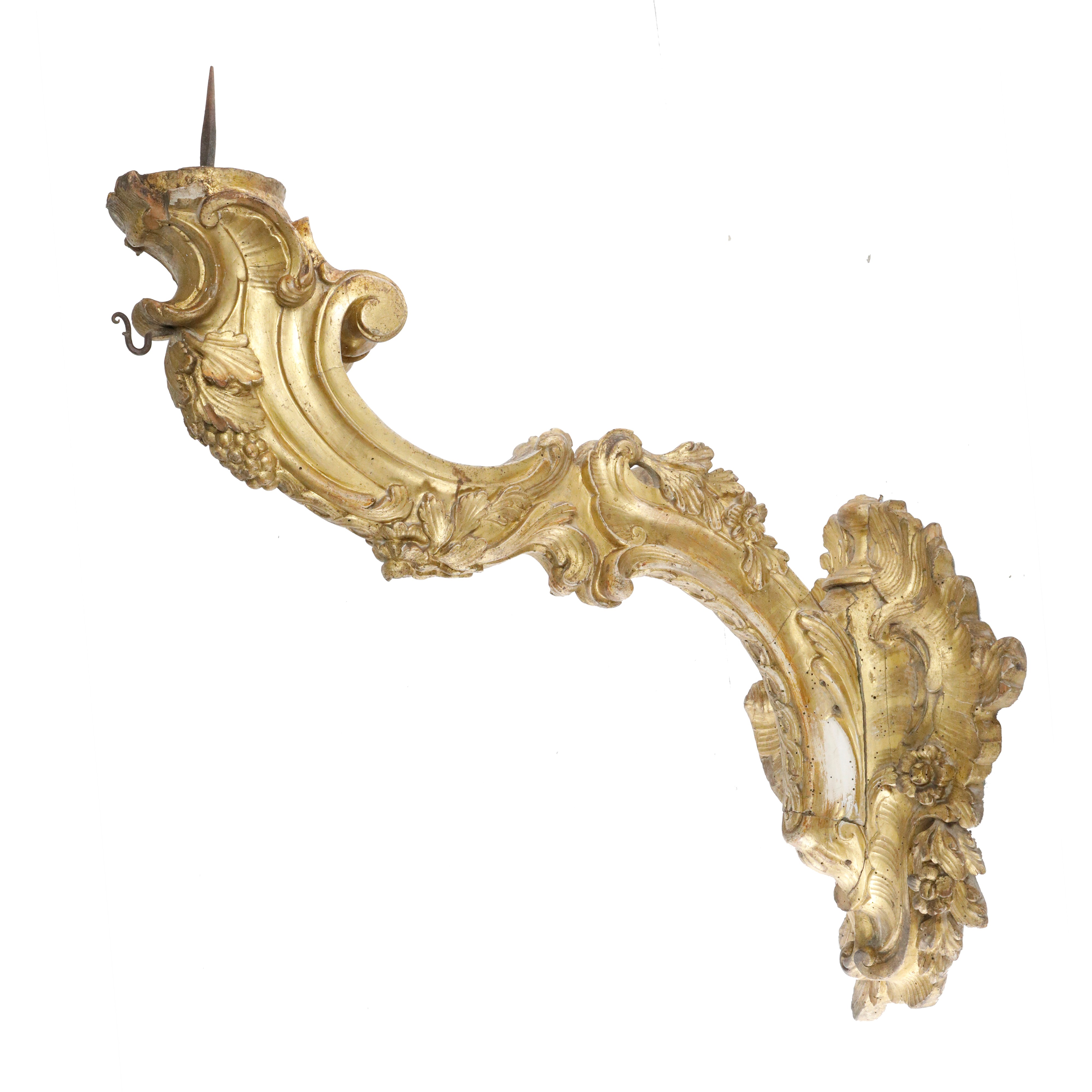 Importanti bracci dorati portacero Luigi XIV - Centro Italia