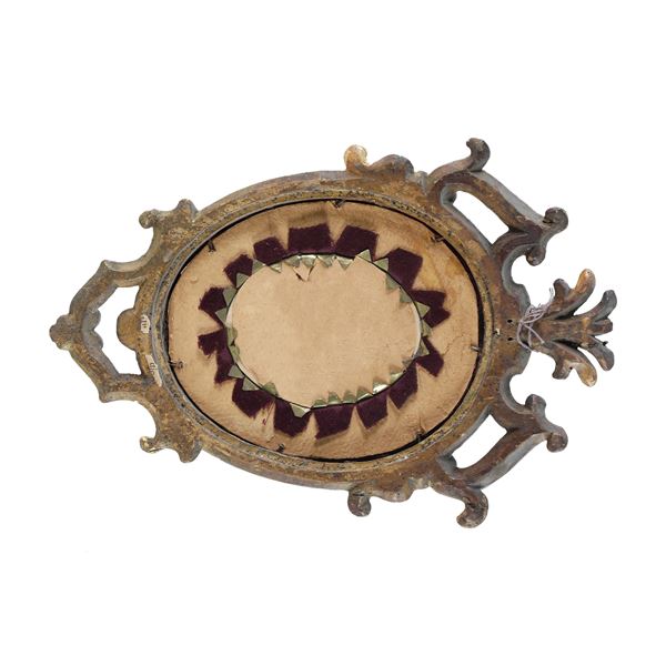 In cornice in legno intagliato e dorato, coeva.