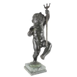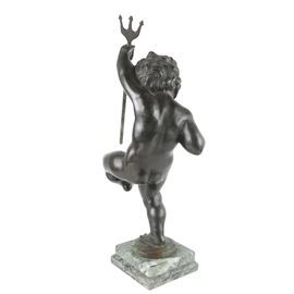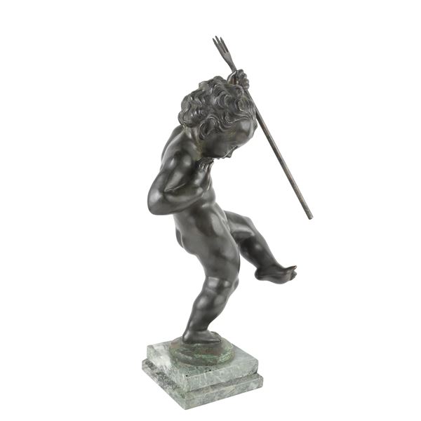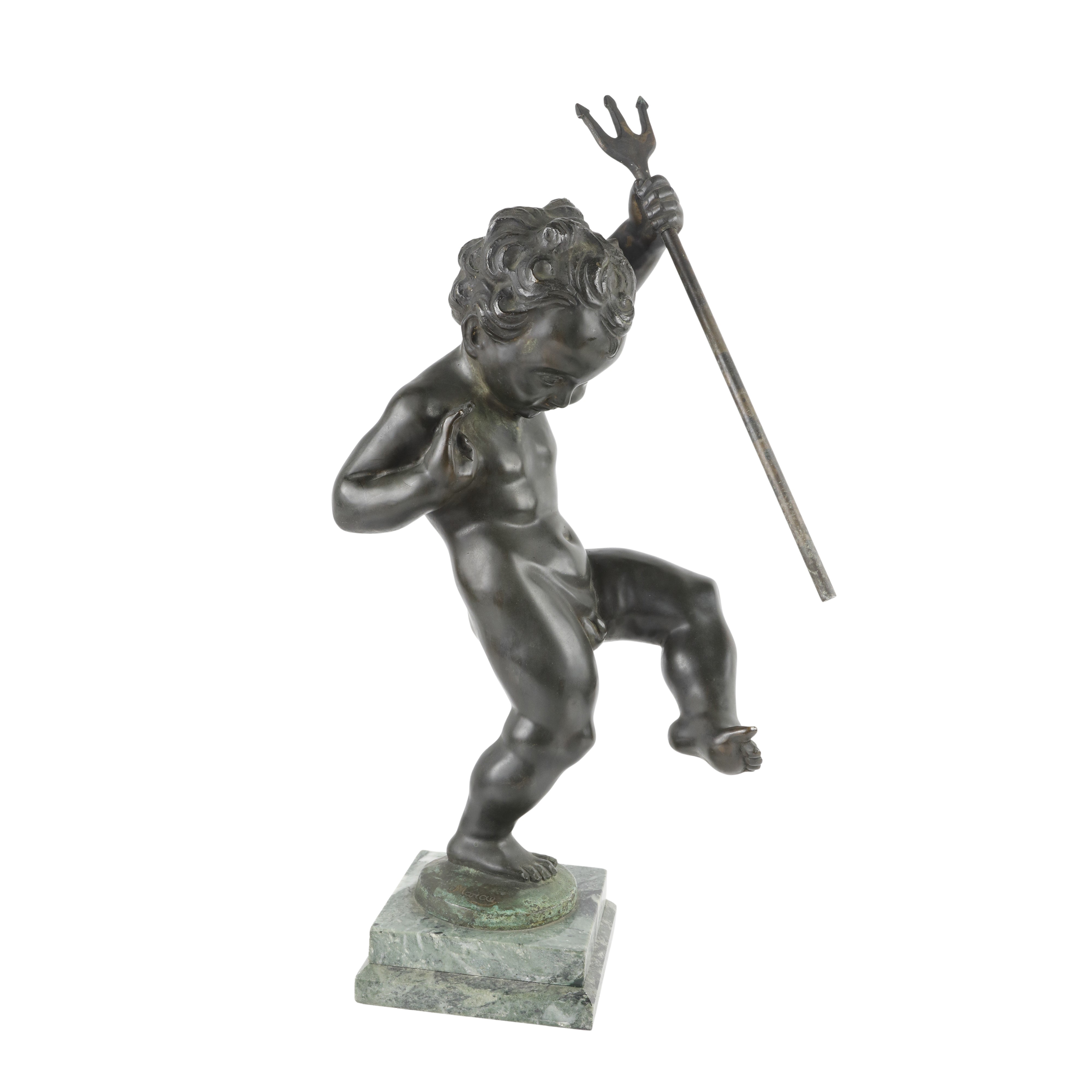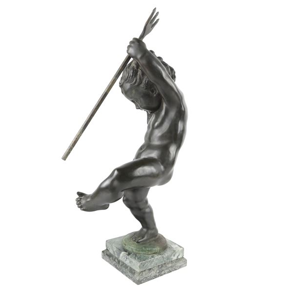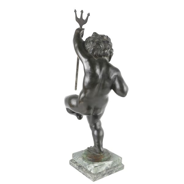 Bambino che si diverte a giocare con l'acqua con un tridente.