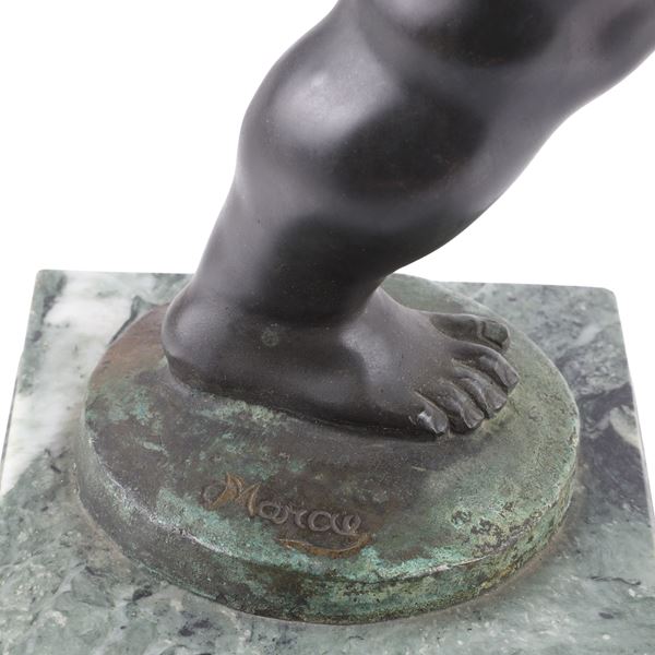 Base in marmo "verde alpi", firma non decifrata sulla stessa.