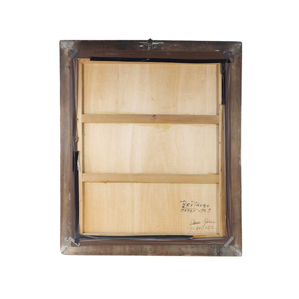 cm 88x74 (cornice 102x87,5)Dipinto olio su tela con cornice Salvator Rosa laccata e dorata.