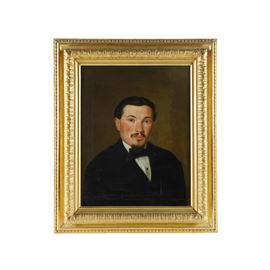 Dipinto olio su tela raffigurante "ritratto di giovane uomo con papillon"