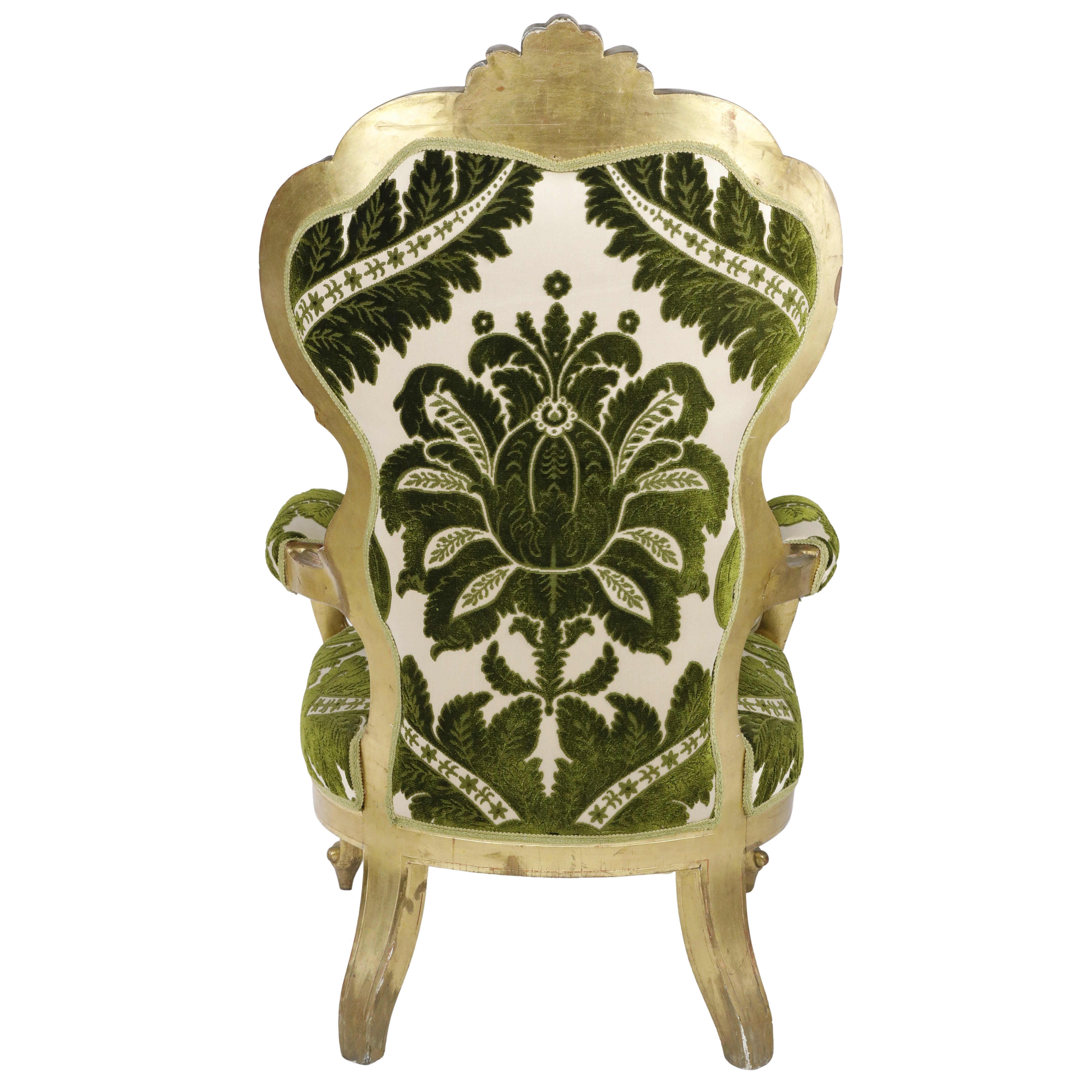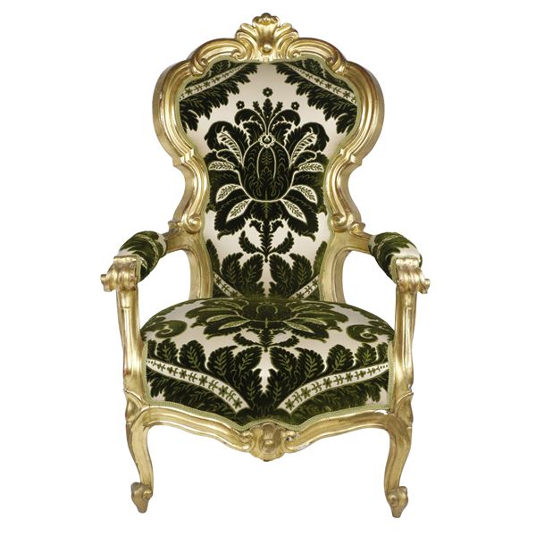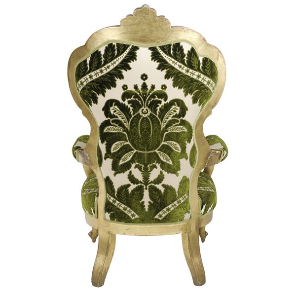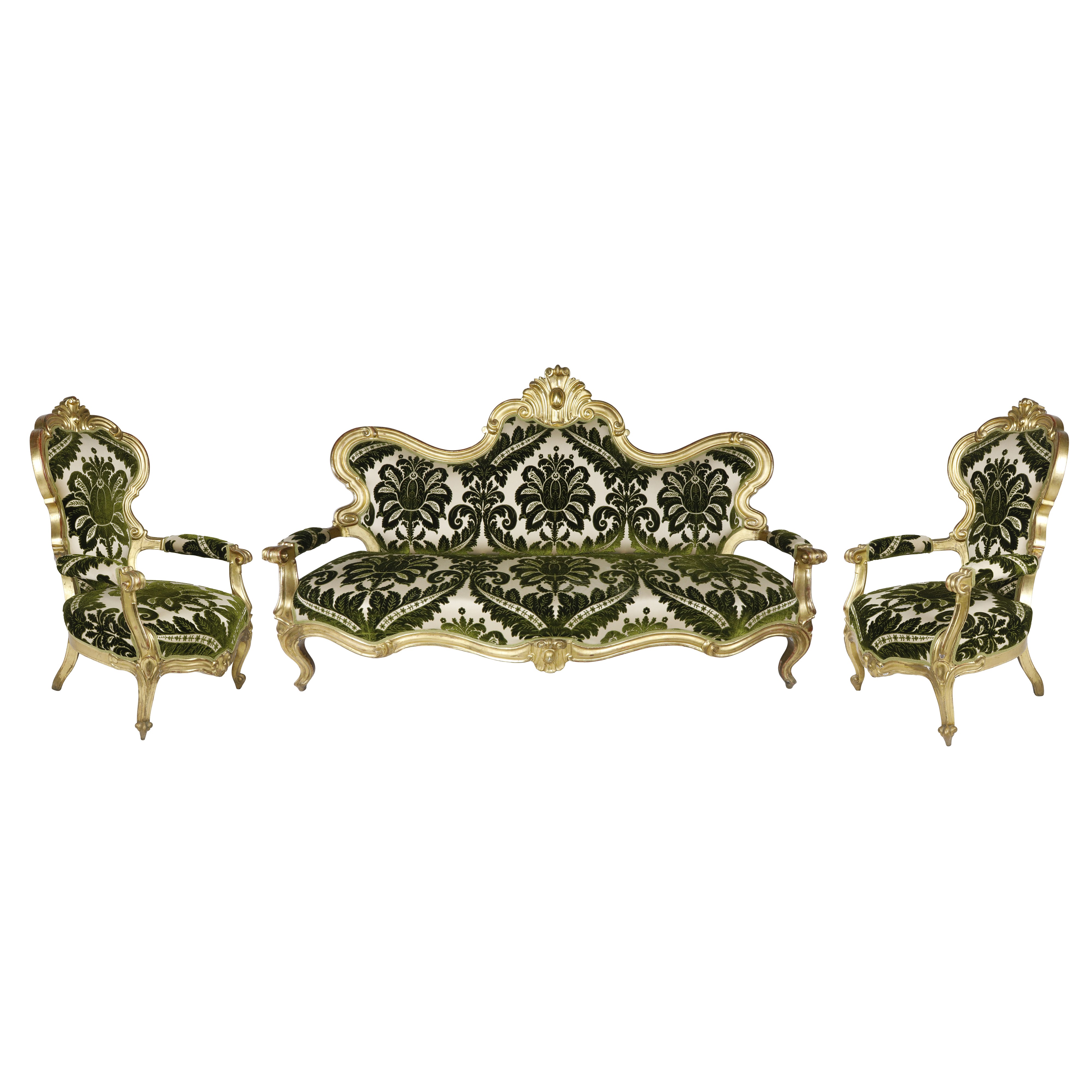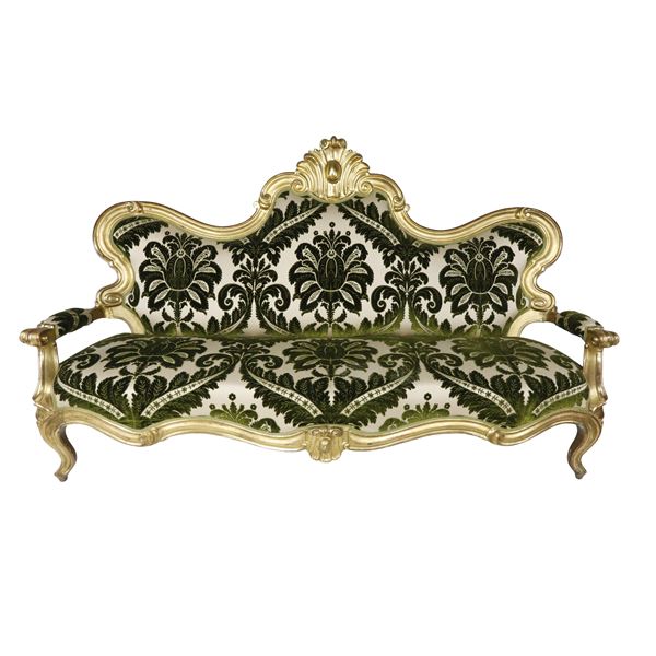 Divano Luigi Filippo dorato foglia oro con poltrone