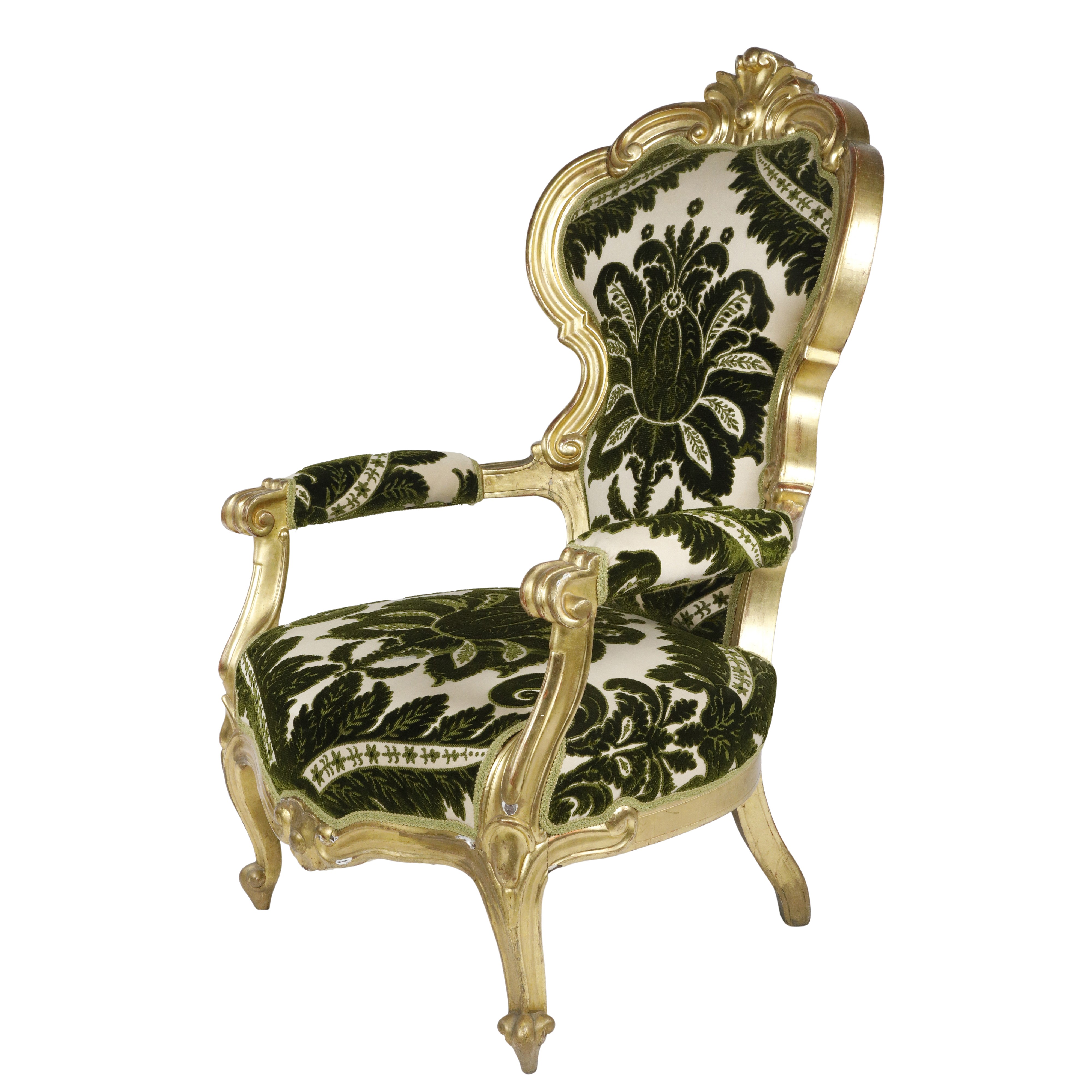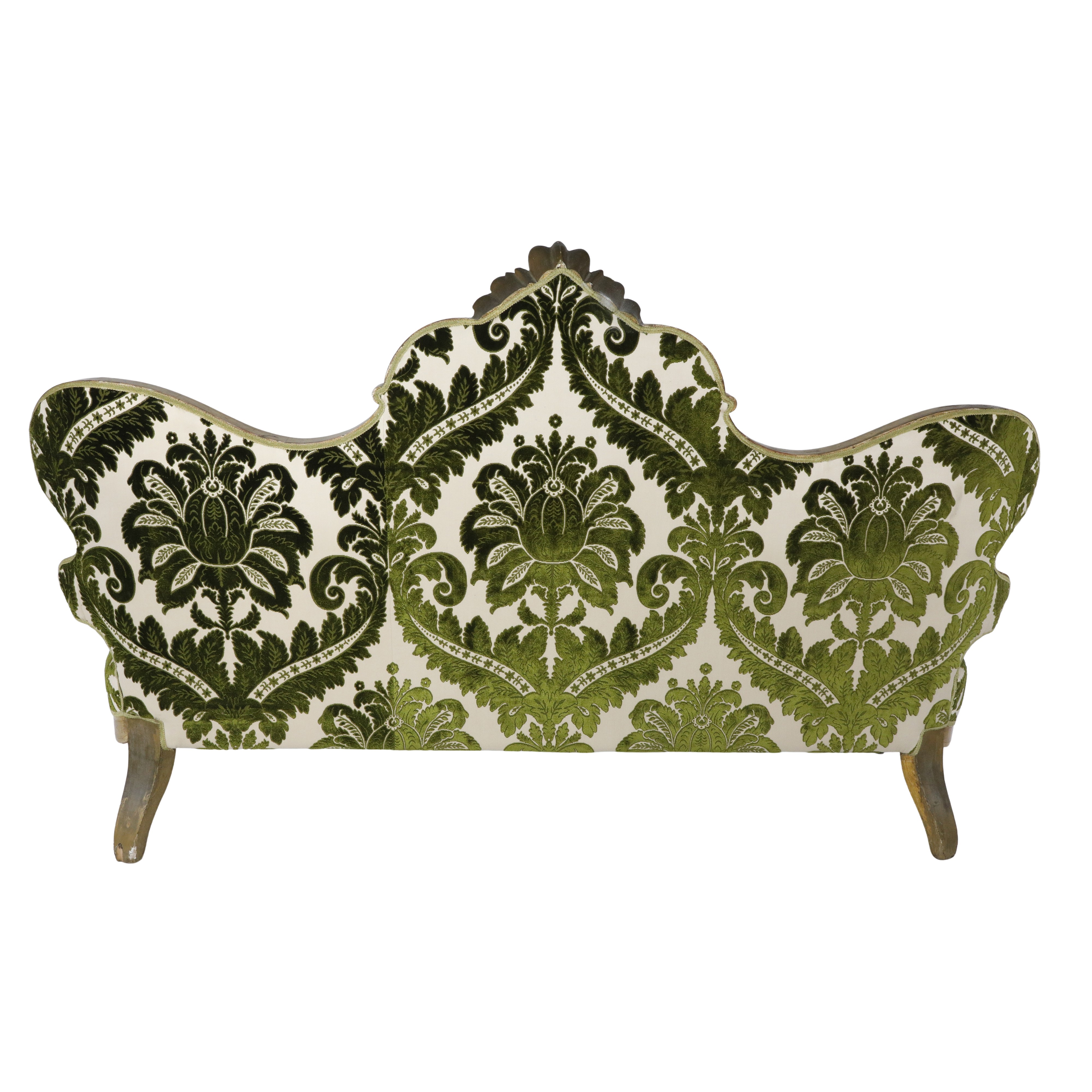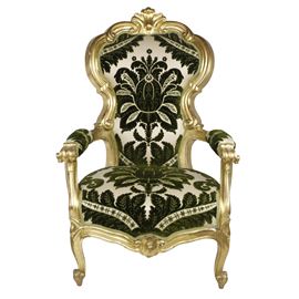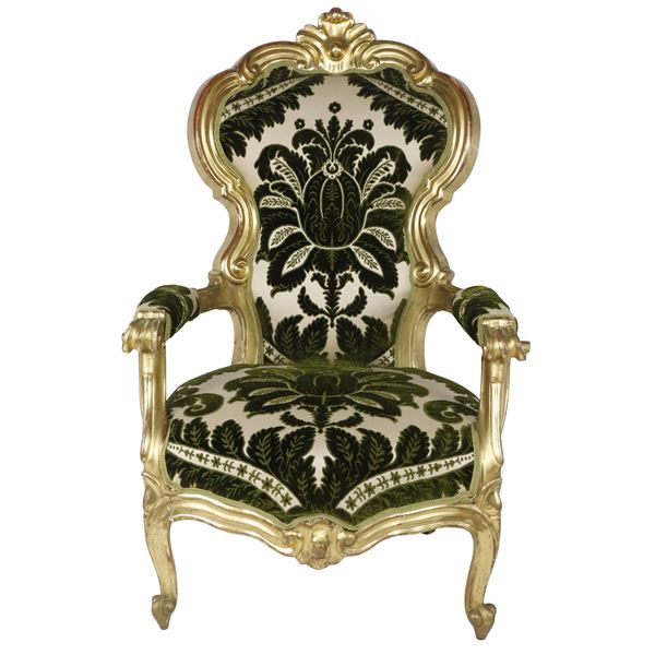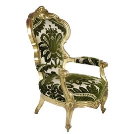 Divano Luigi Filippo dorato foglia oro con poltrone