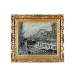 Dipinto olio su tela raffigurante "Naviglio".