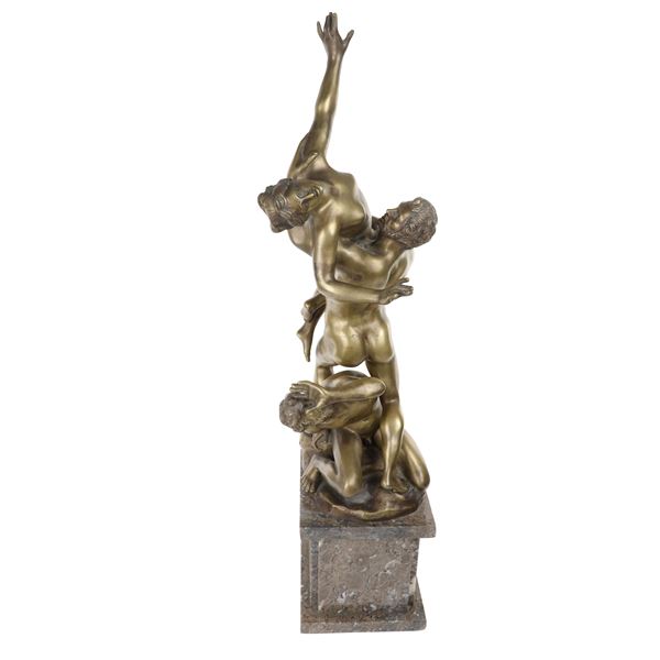 Gruppo scultoreo in bronzo raffigurante ratto delle Sabine, dal modello del Giambologna