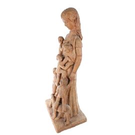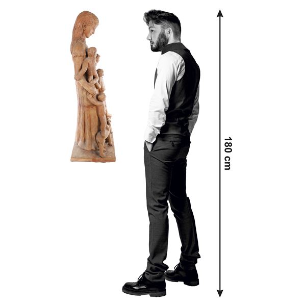 Grande scultura "Maternità" in terracotta, firmata su basamento "P.C. Lattanzi, 1979".