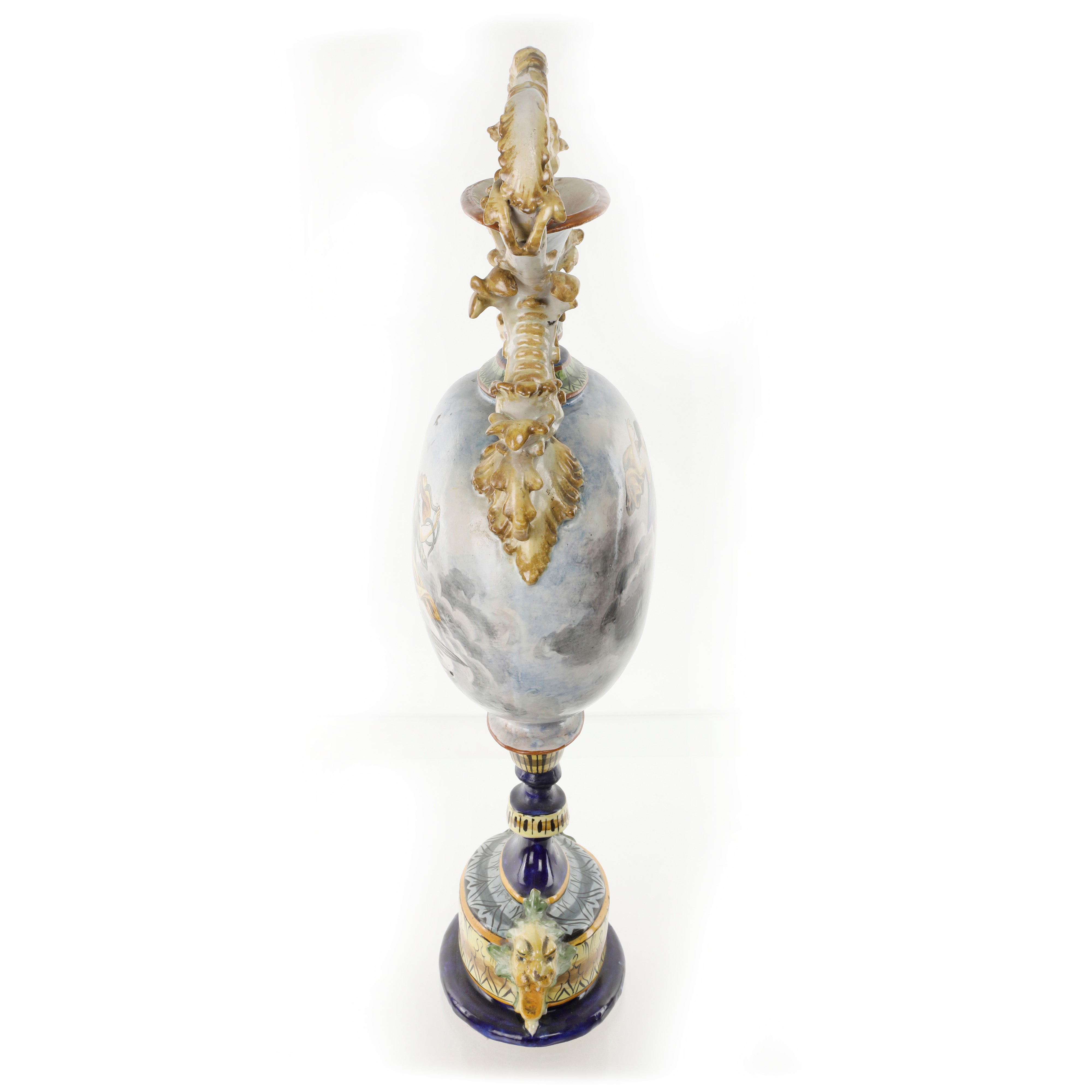 Vaso in maiolica dipinto a tutto tondo con scene mitologiche.