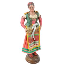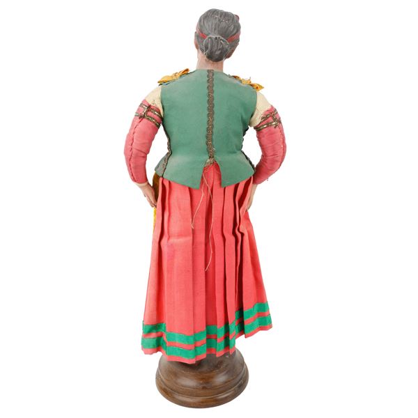 Testina in terracotta policroma, occhi in vetro, arti superiori e inferiori in ceramica policroma, manichino in fil di ferro e stoppa.