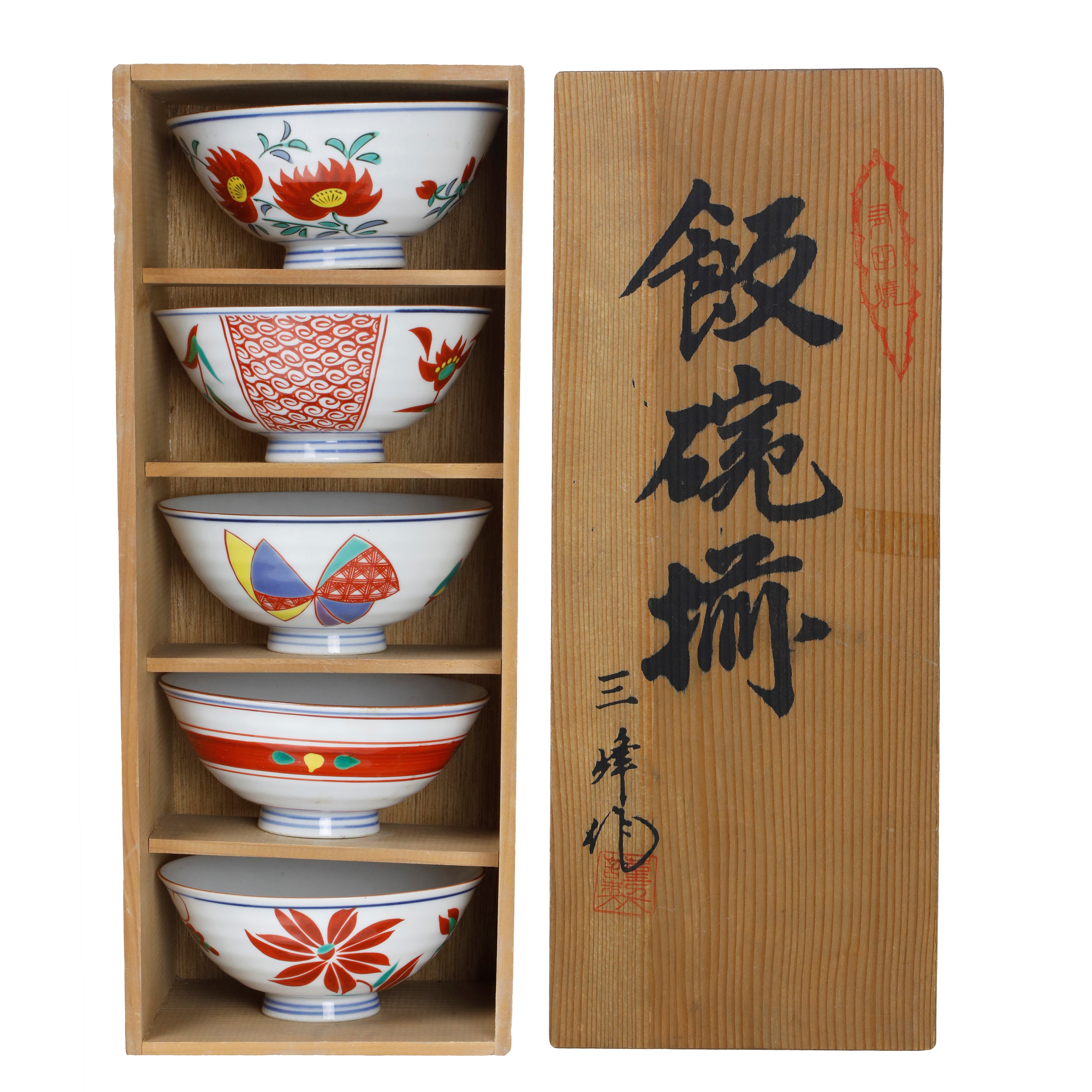 5 Ciotole da riso - bowl set in scatola originale in legno-