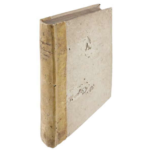 Quarter-folio volume, rigid binding with vellum on the spine bearing the title of the work.