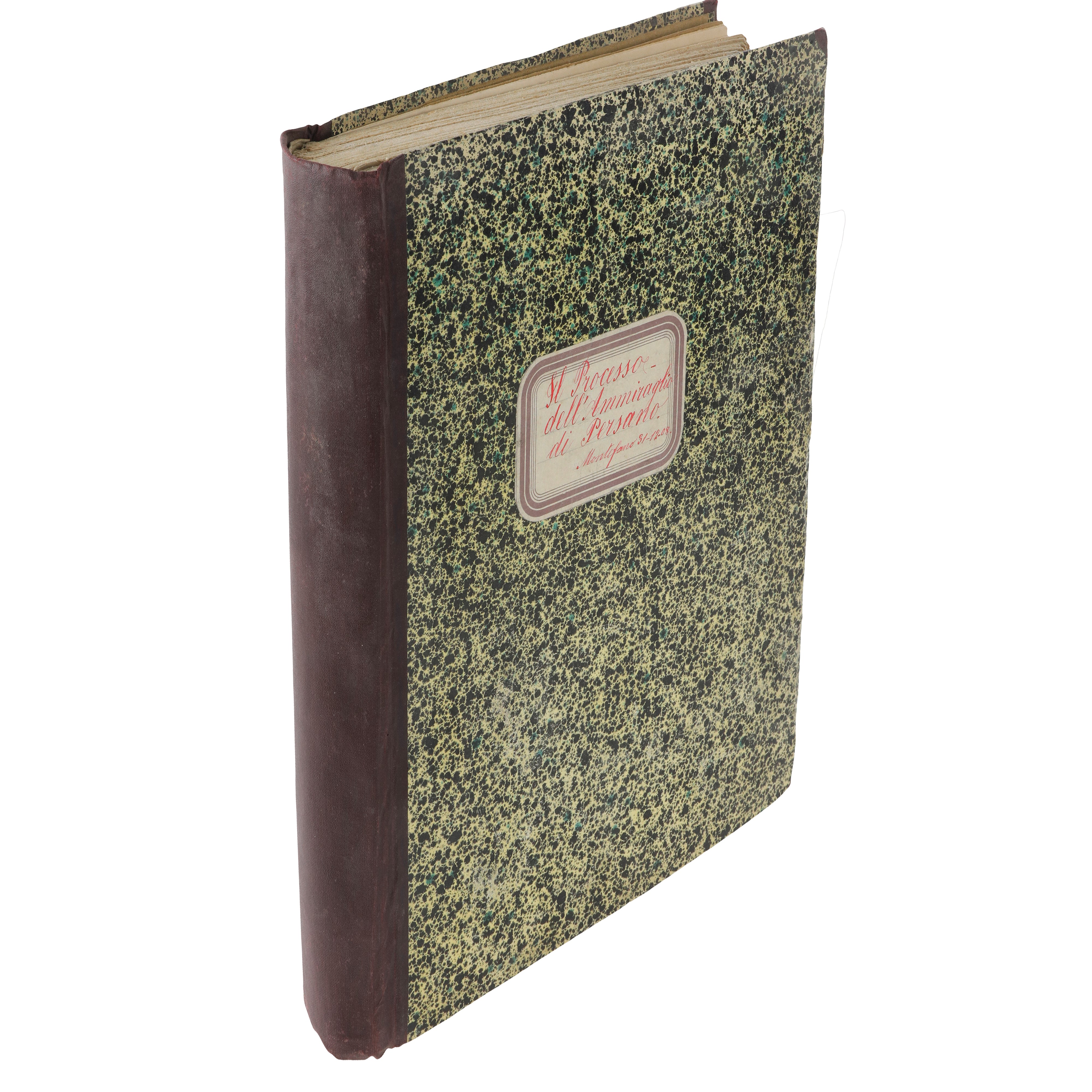 Binding: Original marbled cover with applied label on the upper board bearing manuscript title and date “Montefano 31-12-08”