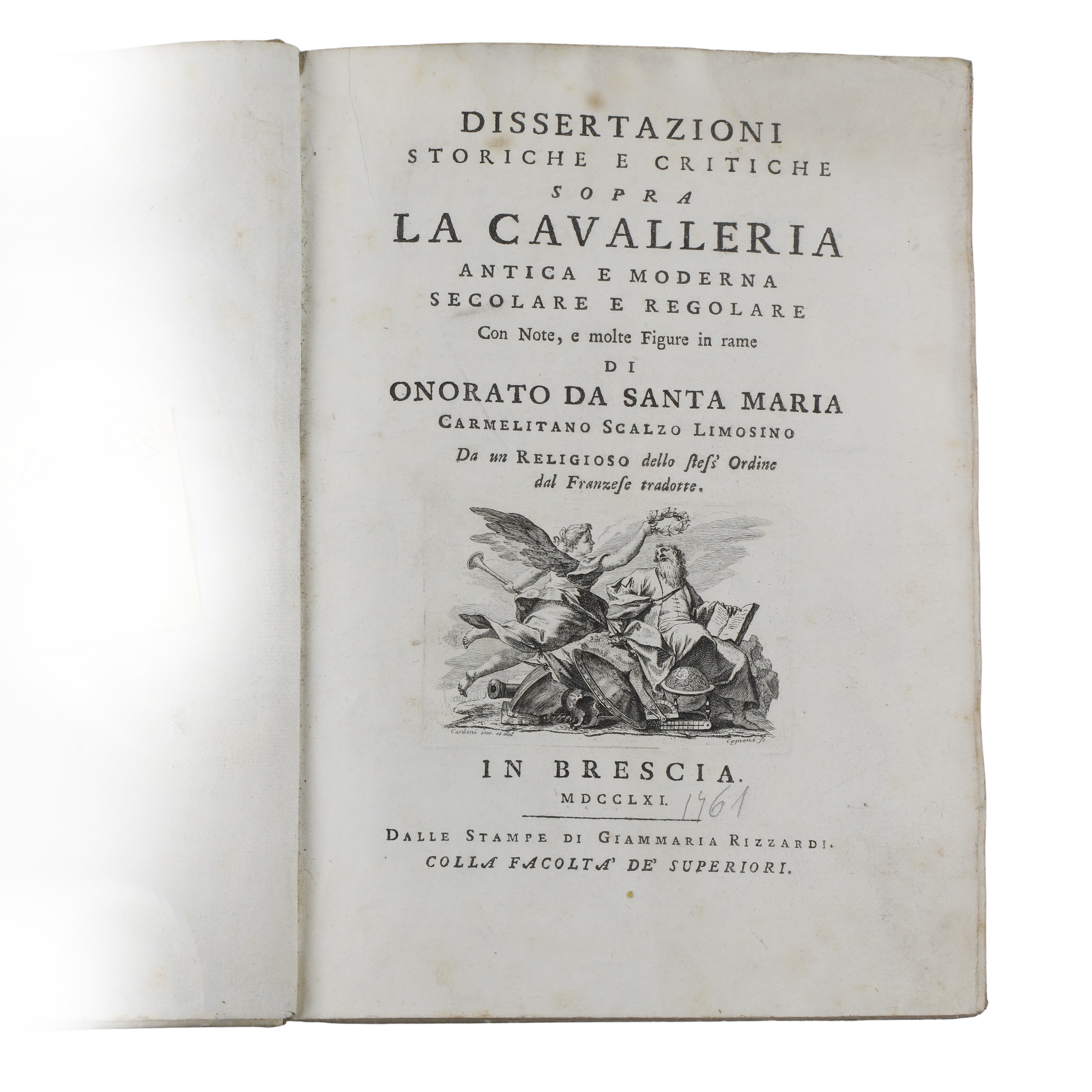 “Dissertazioni storiche e critiche sopra la cavalleria antica e moderna” di Onorato Da Santa Maria Carmelitano Scalzo Limosino.