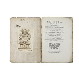 A rare scientific pamphlet in epistolary form addressed to Marquis Gherardo Rangone, a prominent political and cultural figure of Modena. The text presents “results” of physiological observations, reflecting the learned and experimental spirit of the late 18th century.