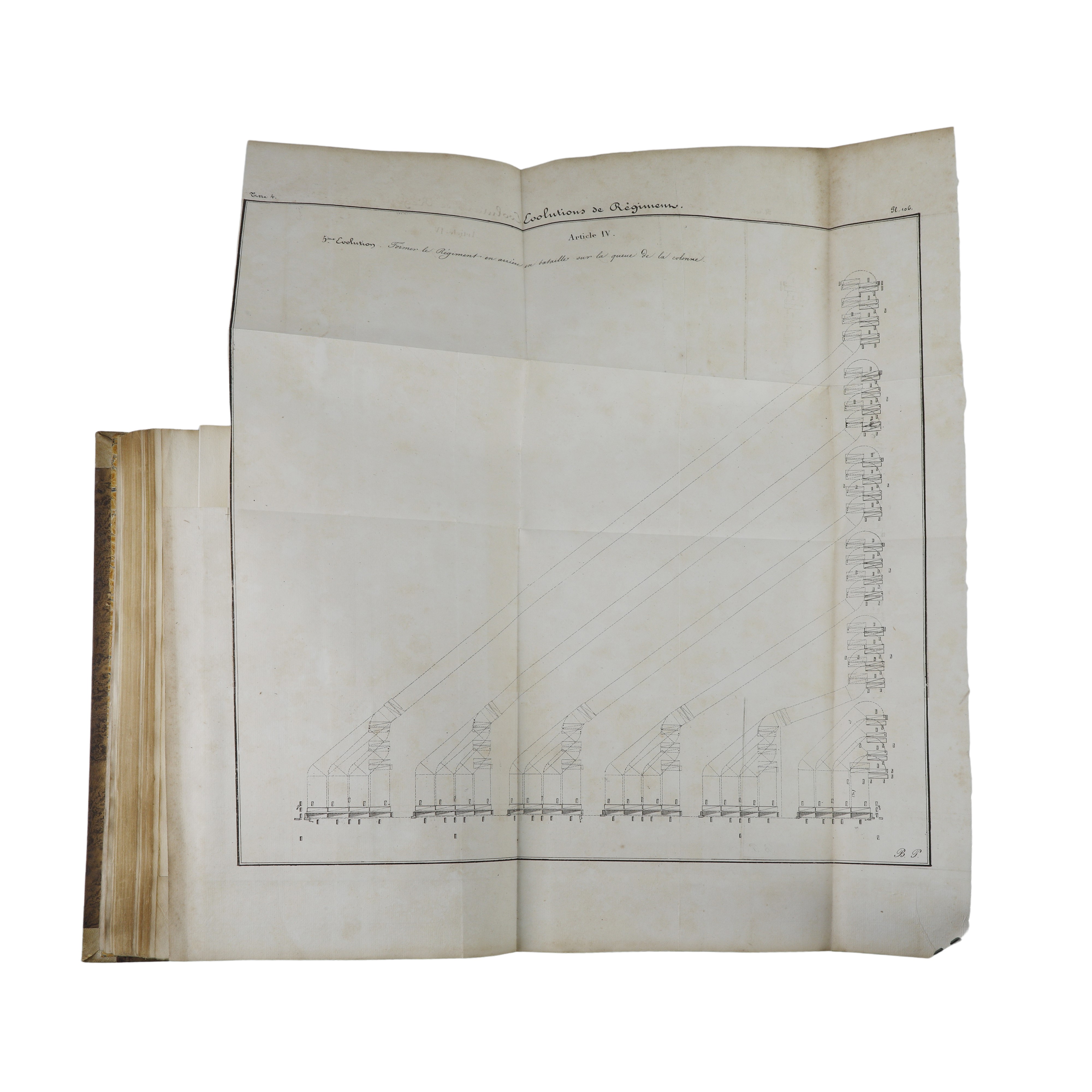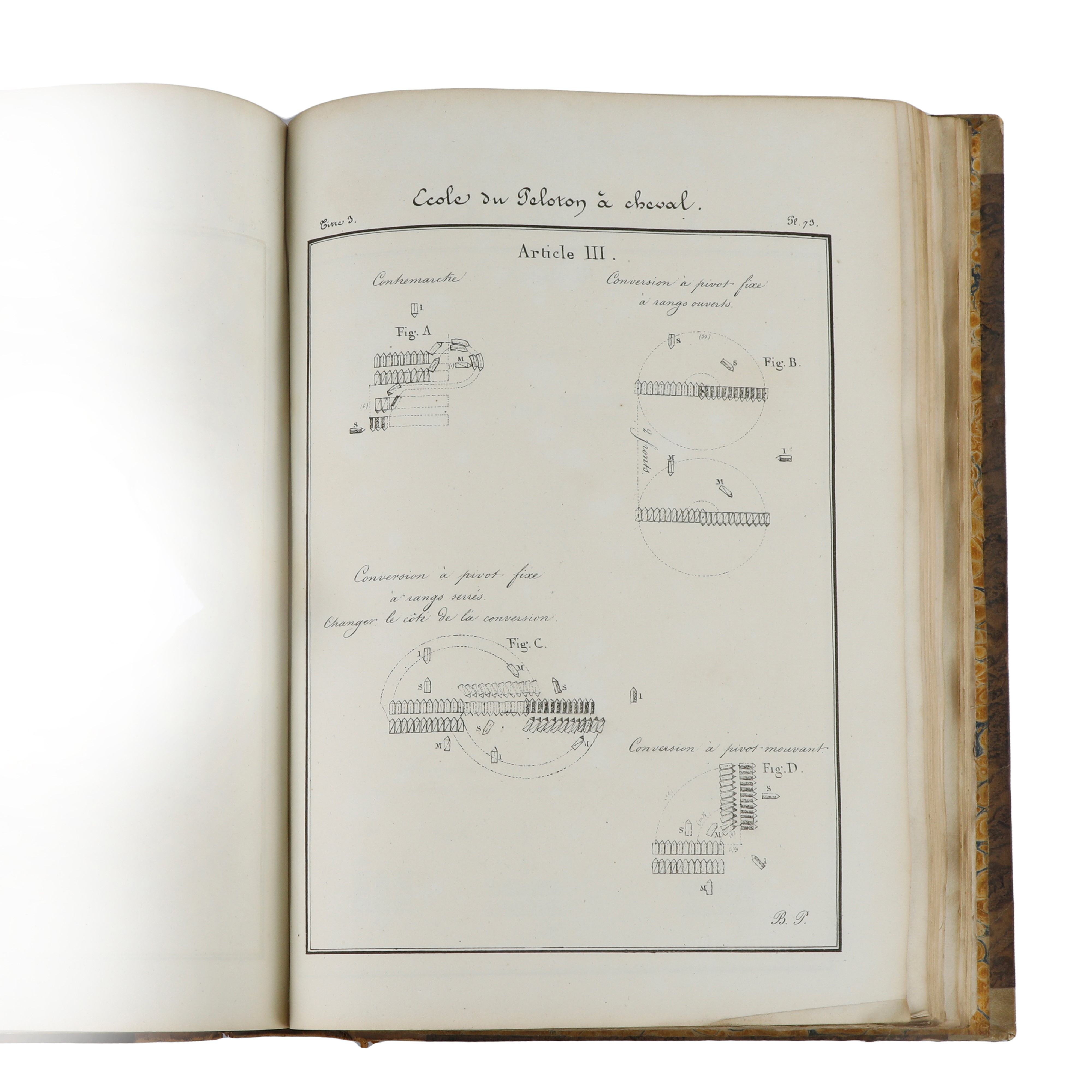 The first volume focuses on cavalry maneuvers and exercises, describing them in detail and including diagrams at the end of the book showing the roles and responsibilities assigned to commanders.