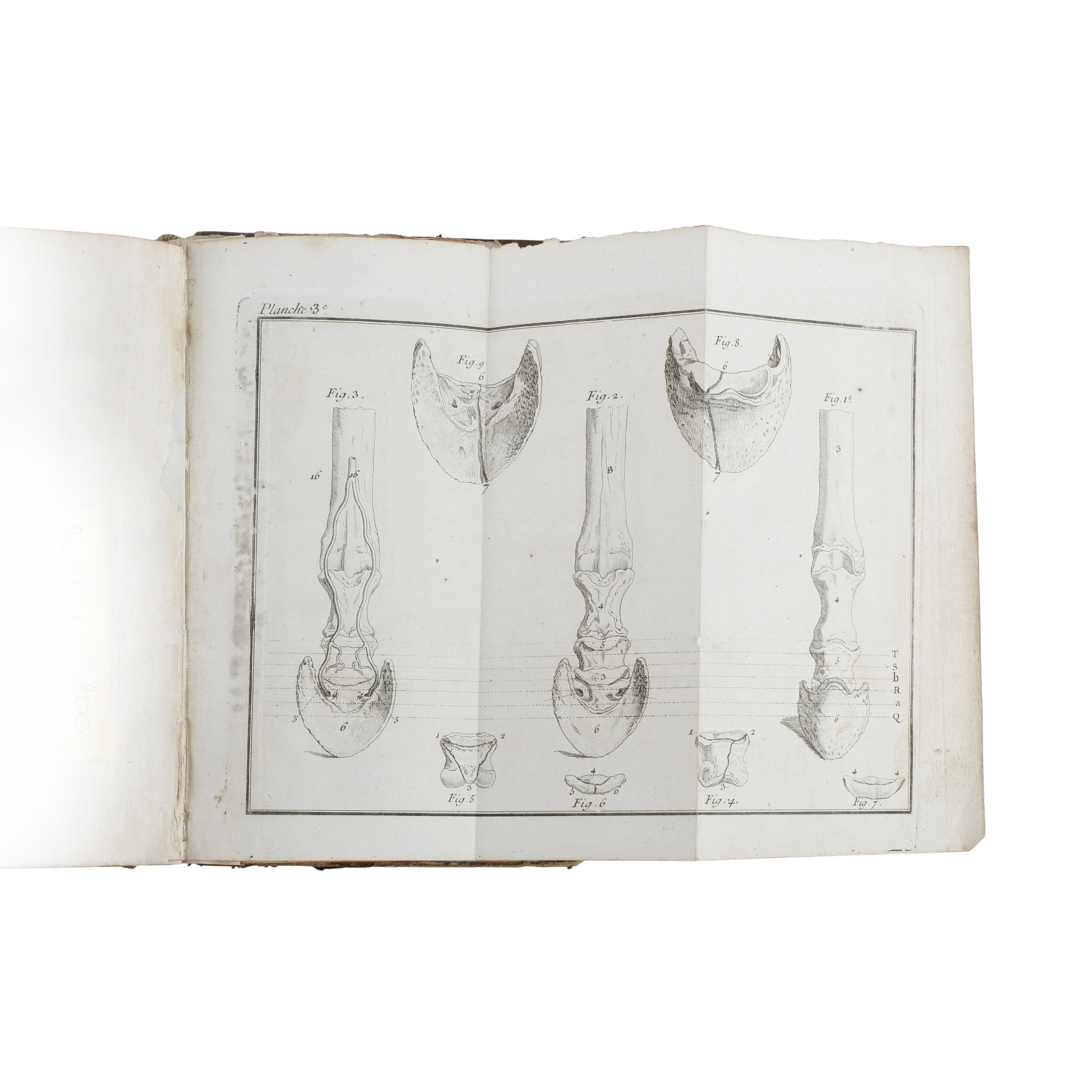 Richly illustrated with folding copperplate engravings, larger than the volume, depicting horseshoes and horse tack. The work is a French-language treatise on observations and discoveries concerning a new practice of the art of horseshoeing.