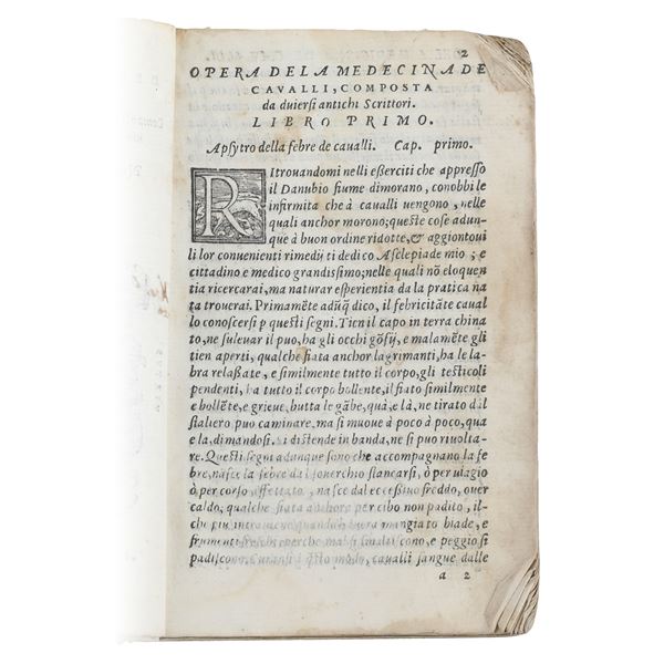 The work is a collection of ancient veterinary texts on horses, translated from Greek into Italian.
