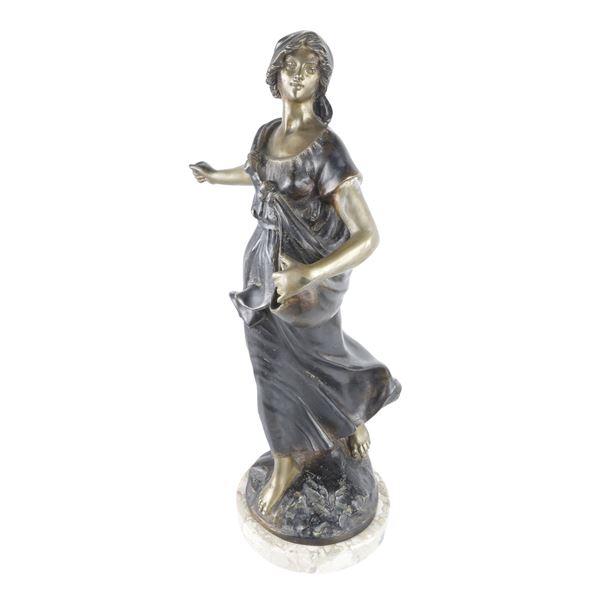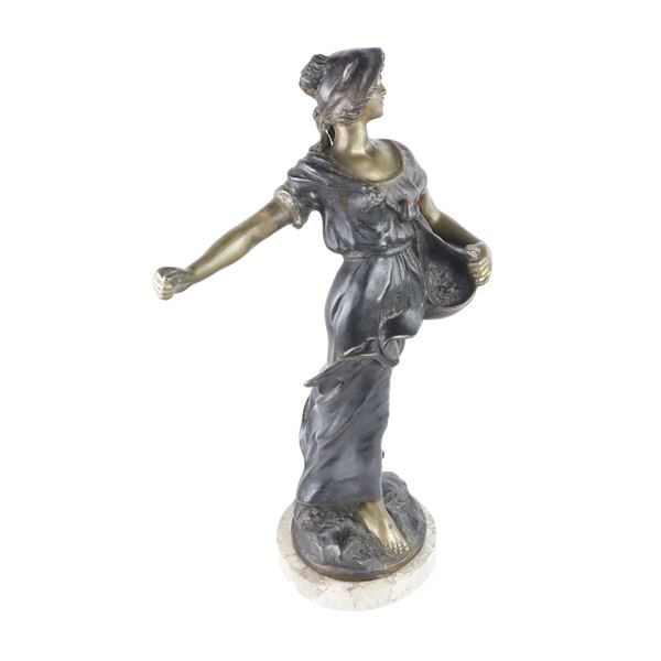 Scultura in bronzo patinato raffigurante "Seminatrice".