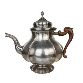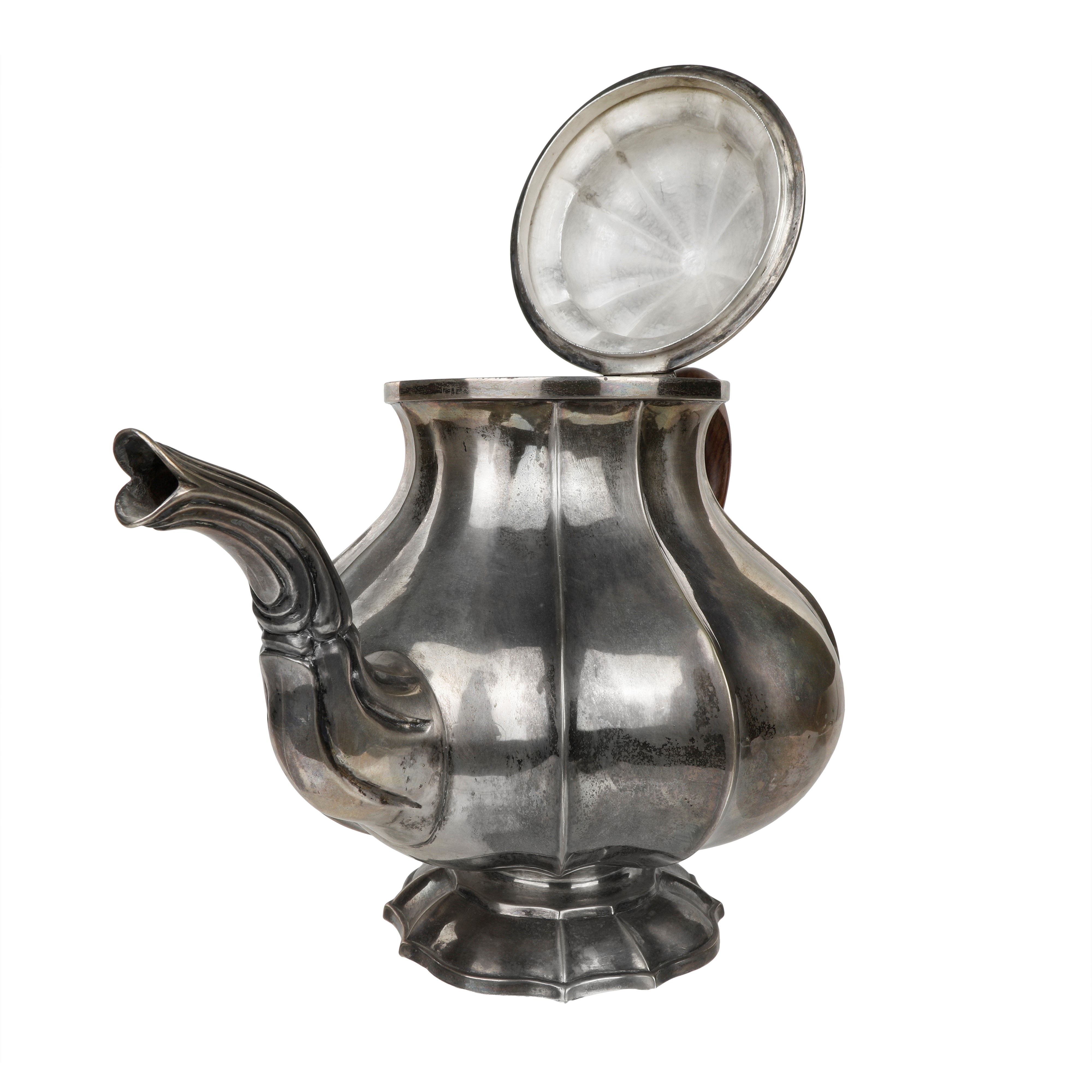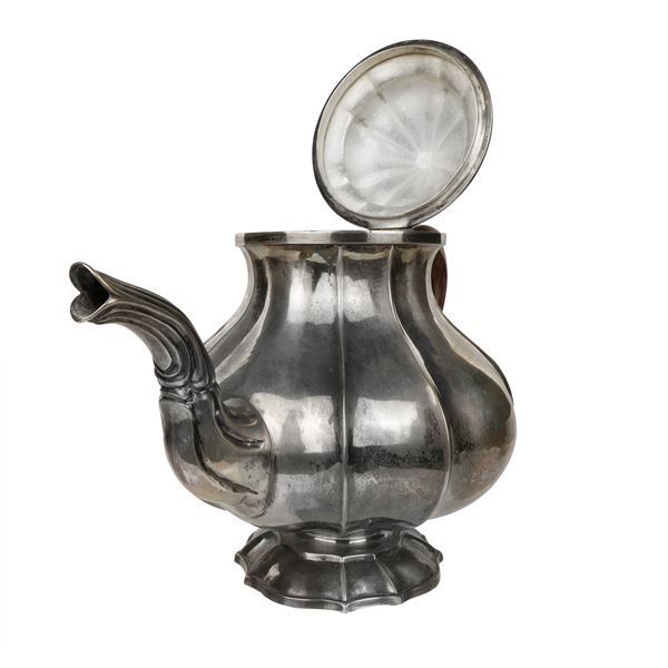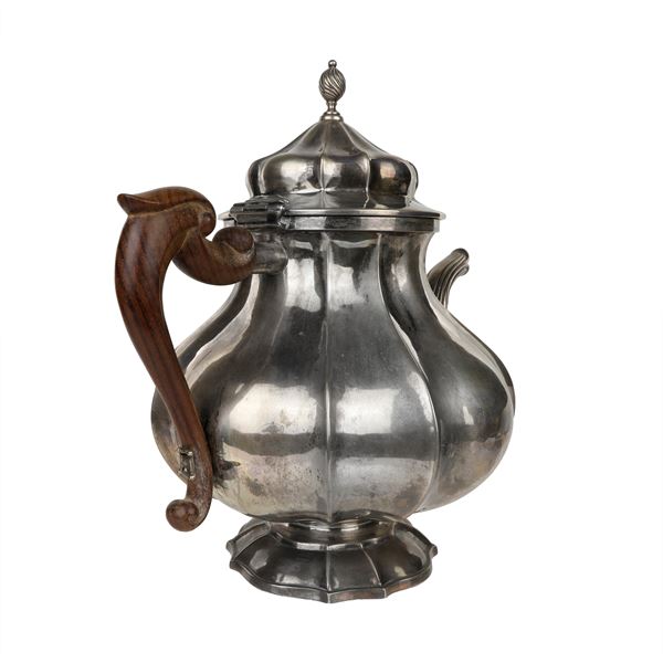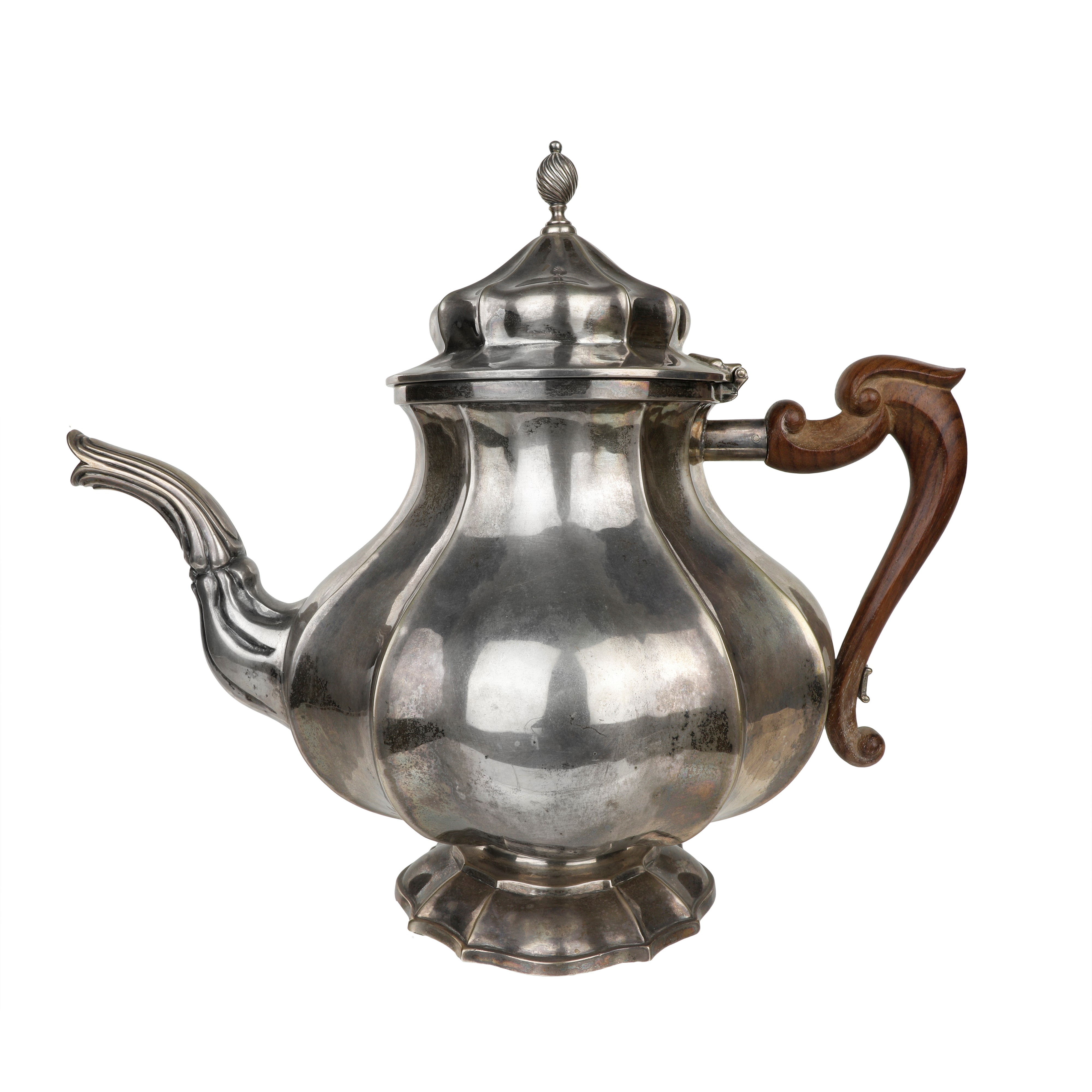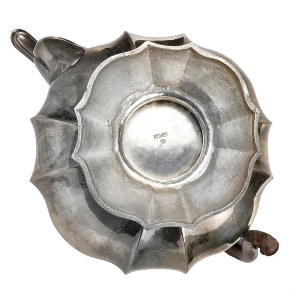 Splendida teiera in argento realizzata dalla storica bottega veneziana Missiaglia, celebre gioielleria e argenteria situata in Piazza San Marco a Venezia, attiva fin dal 1846 e nota per l'altissima qualità artigianale. Il design è d'ispirazione barocca, caratterizzato da un corpo "baccellato"  e linee sinuose con manico progettato per isolare il calore e permettere una presa sicura.